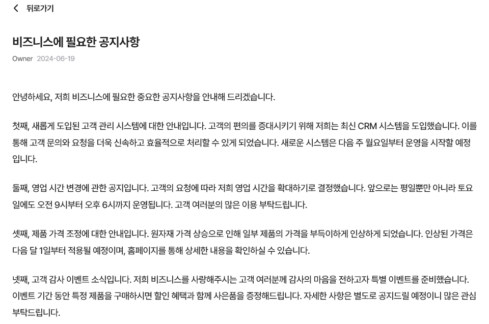 고객분들이 중요한 사항을 놓치지 않도록, 기업에 필수적인 공지사항을 제공합니다.