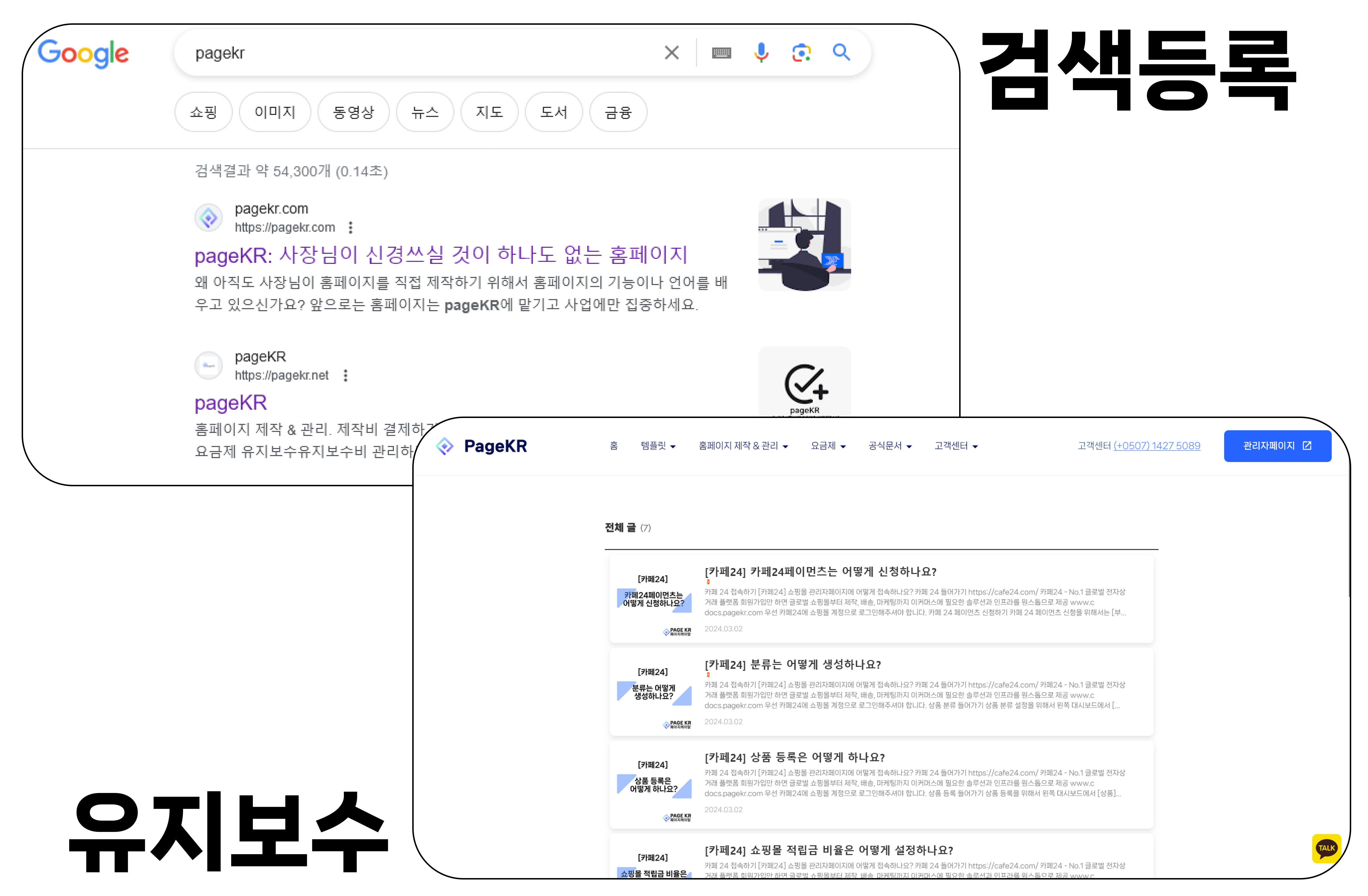 기업에서 관리하기 어려운 검색등록과 유지보수까지 한 번에 pageKR Enterprise 서비스에서 대행해드리겠습니다.
